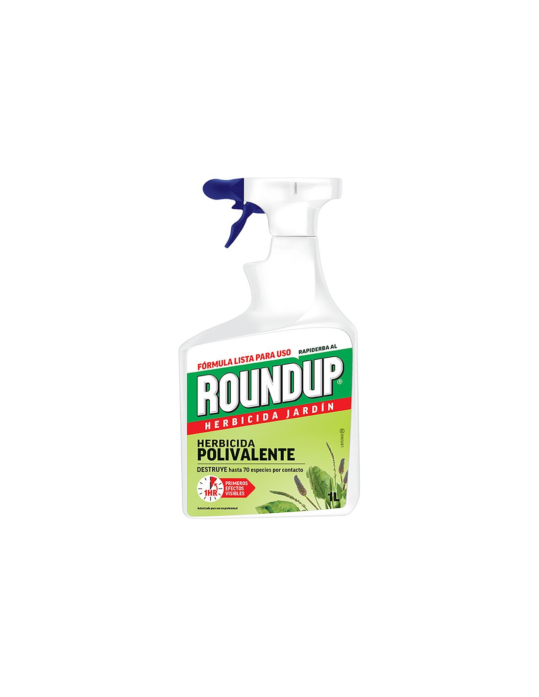 Pistola. Efectos visibles en 6 h, acción rápida. Eficaz desde la primera aplicación. Todas las malas hierbas, todas las superficies. Permite replantar una semana después de su aplicación: Acción foliar y sistémica. Producto listo para usar. Efectos visibles en 6 horas. Destruye las raíces. No es residual . Tratamiento eficaz y controlado. No se derrama. Composición: 7,2 g/l glifosato.